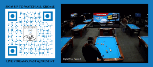 All of our tournament matches are live streamed. To see quickly if any streams are available for viewing live, you can go to digitalpool.net/krome Some tournament matches are aggregated in the video category dropdown menu. If the channel isn’t live, then to find matches more easily, you can go to digitalpool.com/events/krome where all Tournament Brackets and Casual Match lists exist..