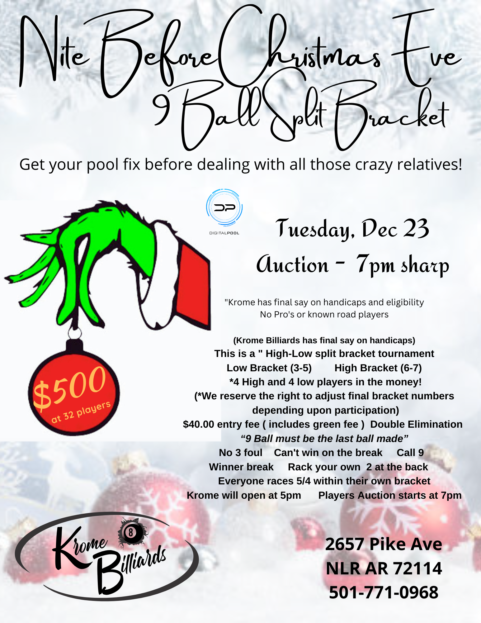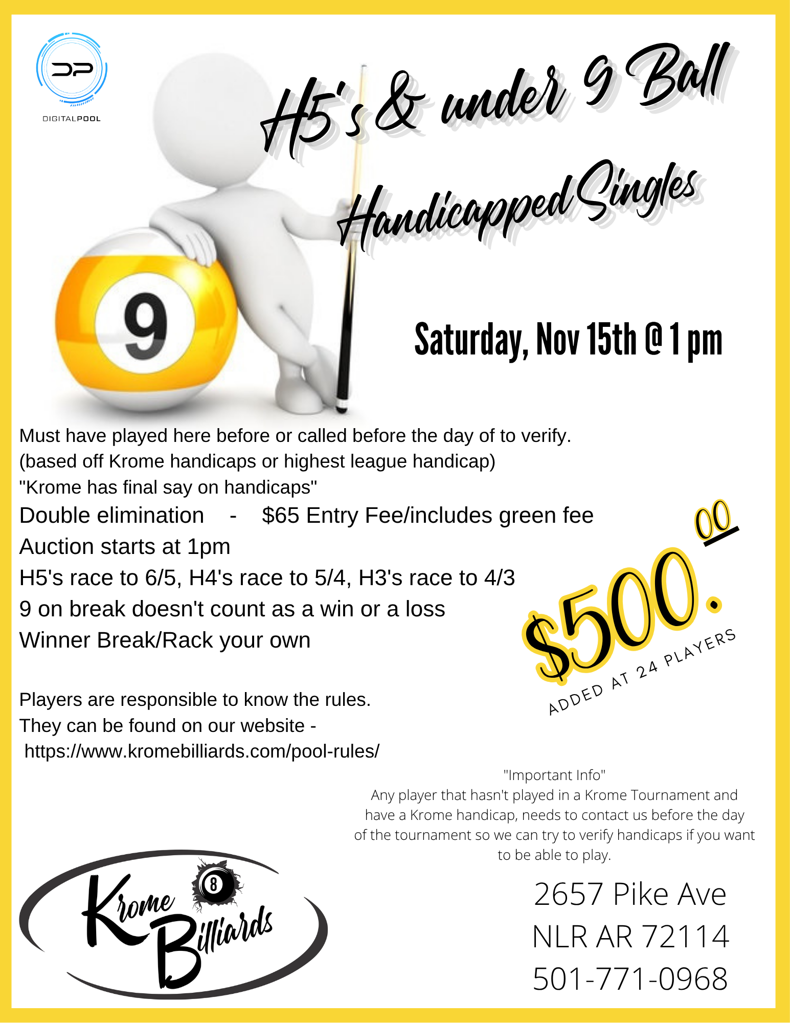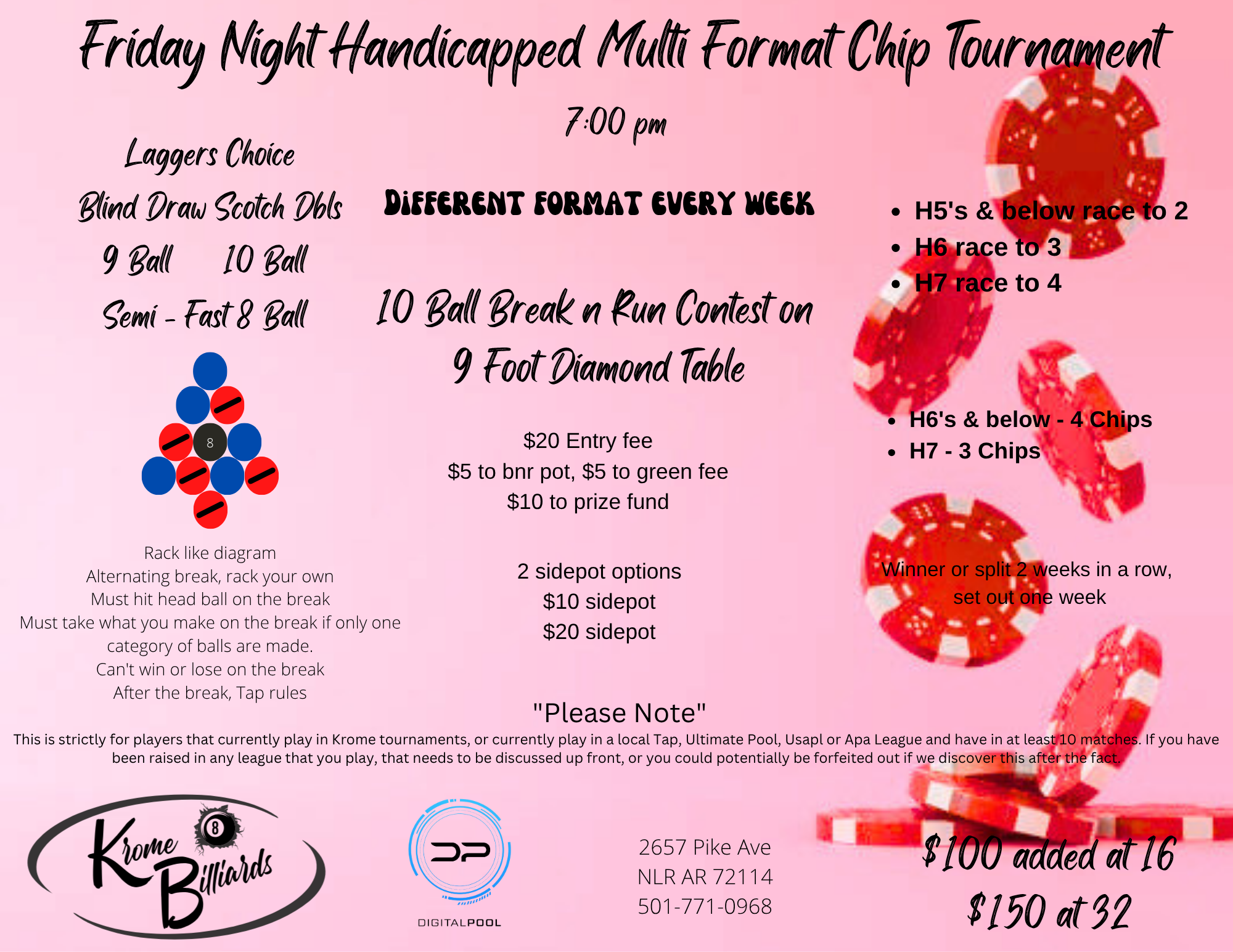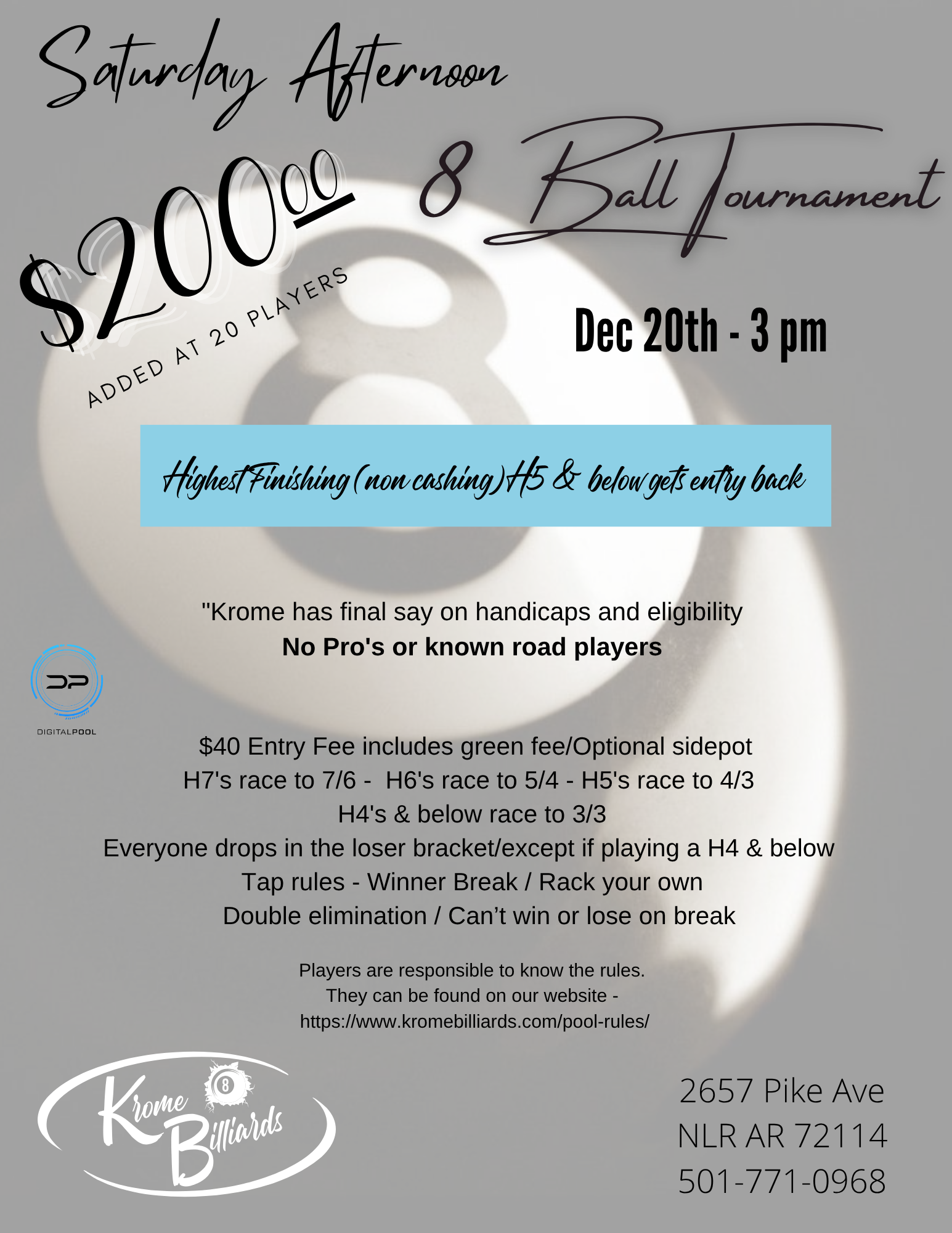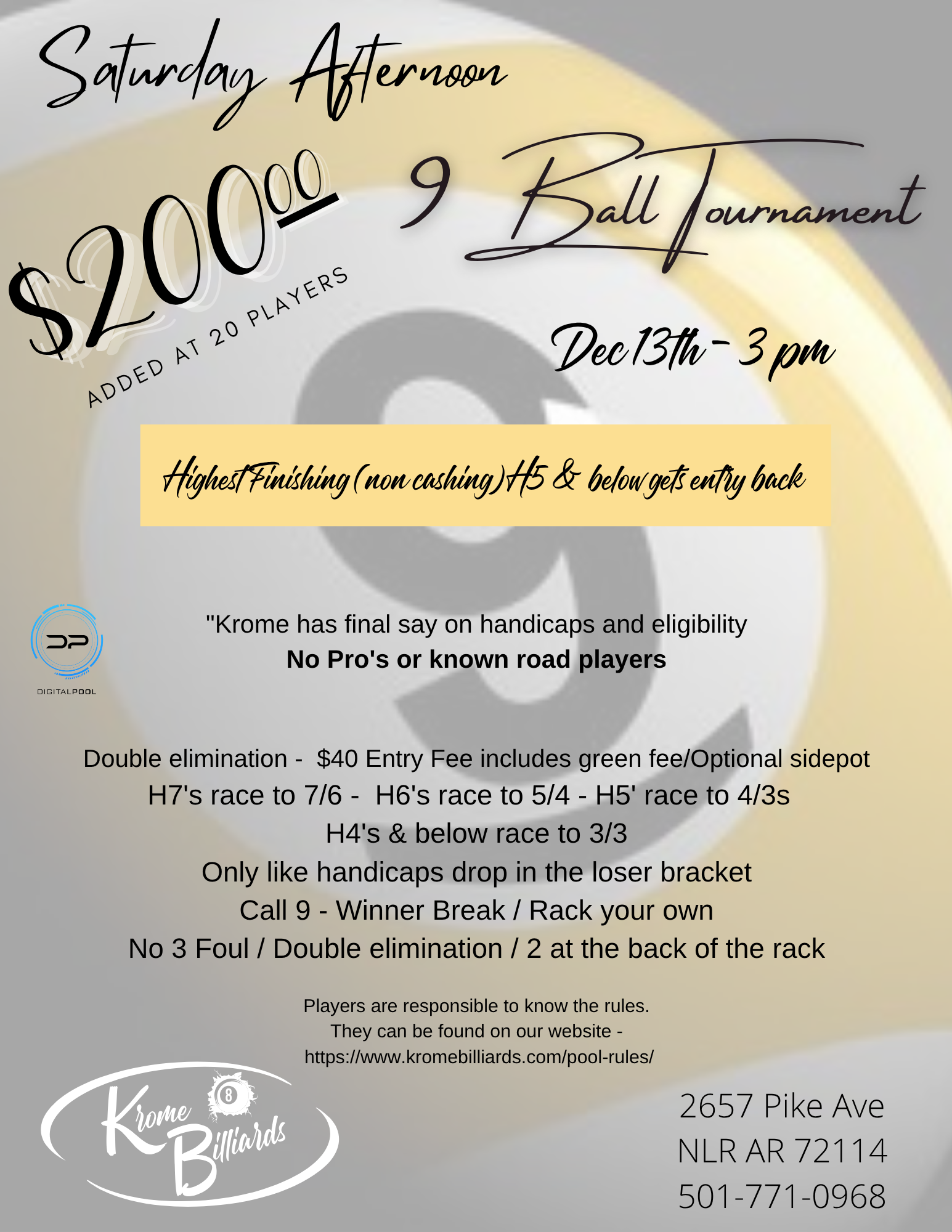 All of our tournament matches are live streamed. To see quickly if any streams are available for viewing live, you can go to digitalpool.net/krome Some tournament matches are aggregated in the video category dropdown menu. If the channel isn’t live, then to find matches more easily, you can go to digitalpool.com/events/krome where all Tournament Brackets and Casual Match lists exist..