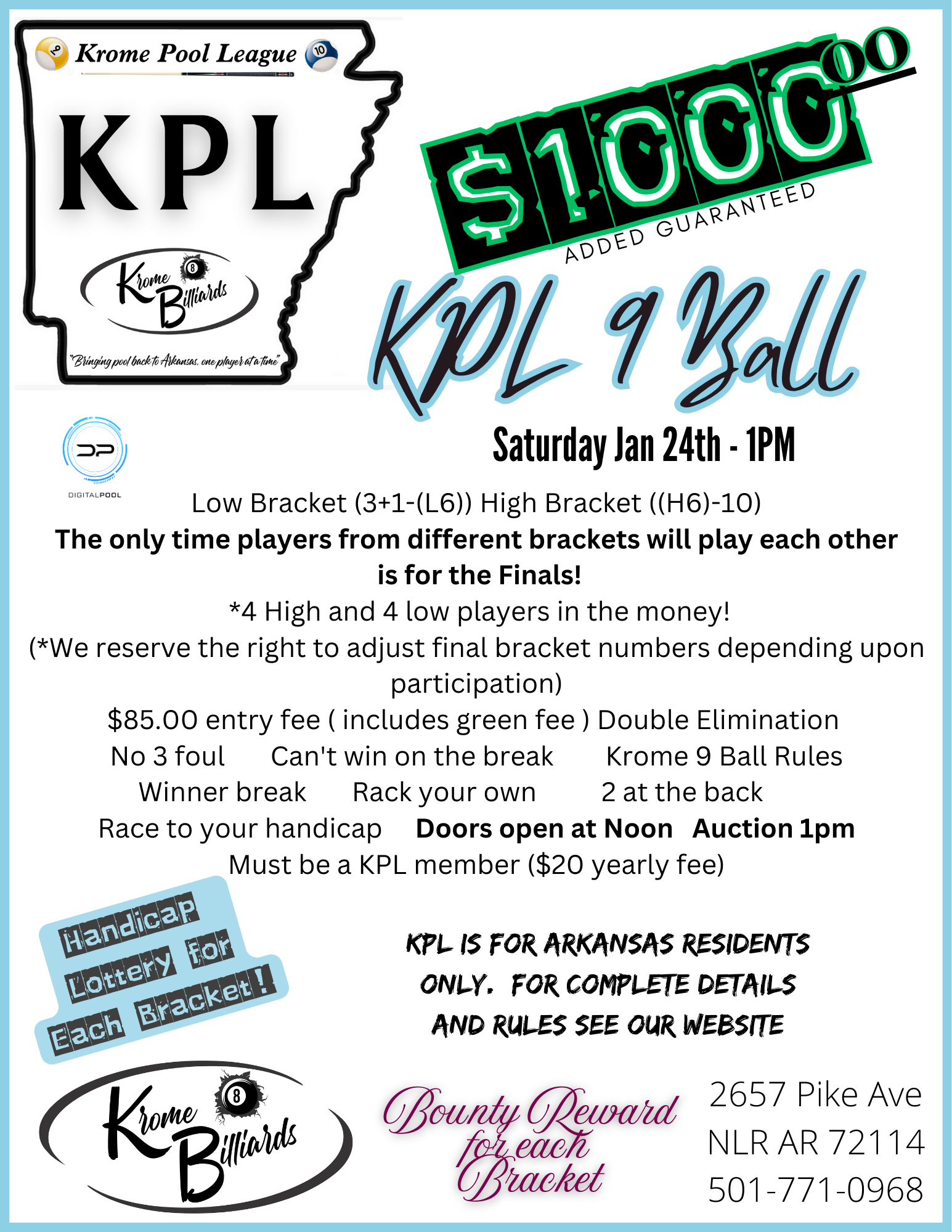 KROME POOL TOURNAMENTS
