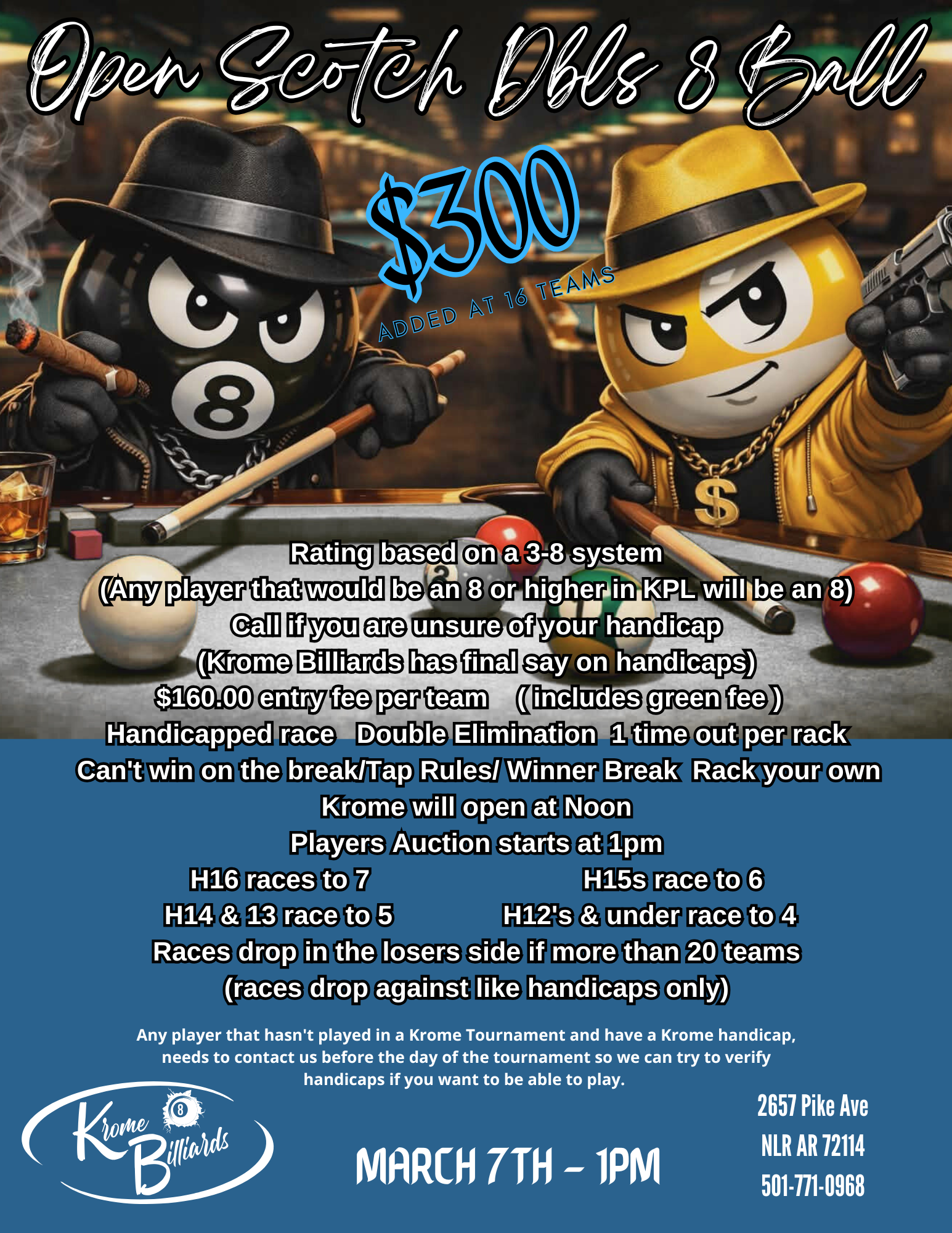To reserve a spot on tournaments with a limited field – pay with paypal